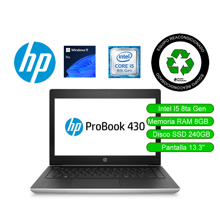 El HP ProBook 430 G5 reacondicionado combina portabilidad, potencia y durabilidad. Equipado con procesador Intel® Core™ i5-8250U, 8GB DDR4 y SSD 256GB, ofrece un rendimiento ágil para tareas de oficina, estudios o trabajo remoto. Su diseño profesional y batería eficiente lo convierten en un aliado confiable para el día a día.