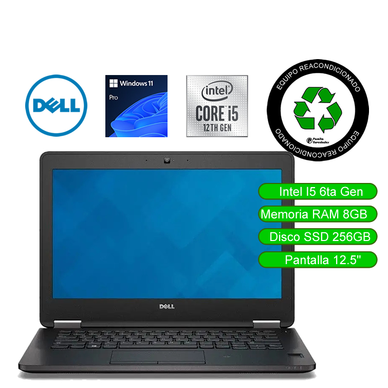 Dell Latitude 7270 reacondicionado con Intel® Core™ i5-6300U, 8GB RAM y SSD 256GB. Ultraportátil de 12.5” con batería de hasta 3h 30m, ideal para oficina, clases y navegación web.